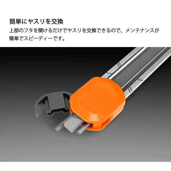 また、上部のフタを開けるだけでヤスリの交換が可能なため、目立てガイド自体のメンテナンスも手間なく素早く行えます。