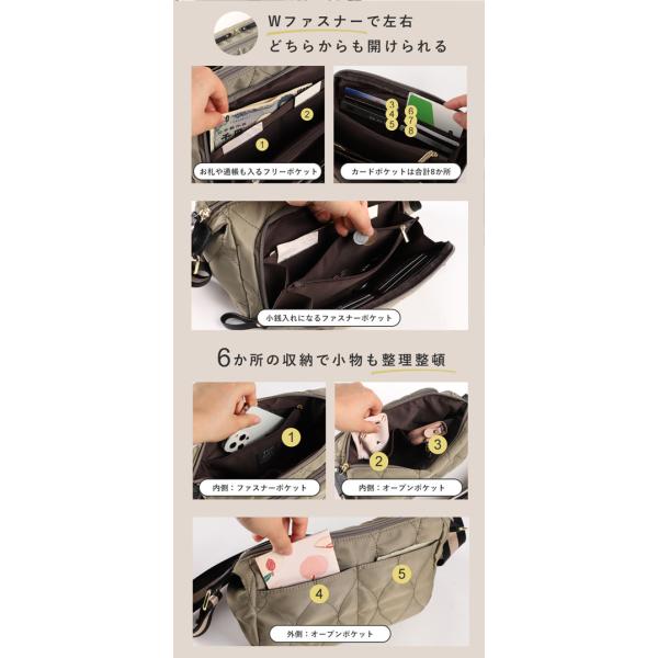 A1502 キルティング ショルダーバッグ ナイロン 軽量 バッグ 撥水 , お財布 リズデイズ 機能付き マザーズバッグ ポシェット レディース かるいかばん 多収納