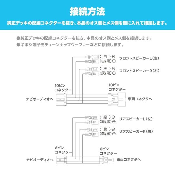 本品はトヨタ純正スピーカー配線から又取りでスピーカー出力を取出す場合に使用するケーブルです。