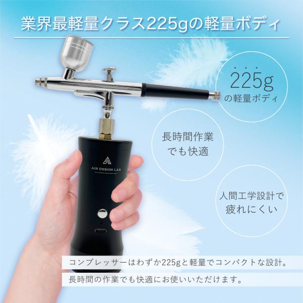 クラフトマスター エアブラシ 充電式 28PSI コンプレッサー セット Type-C ダブルアクション 0.3mm 3種カップ フィギュア 塗装 国内メーカー (ADL-CM01)