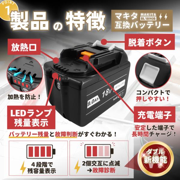 マキタ 互換品 バッテリー BL1890B 18v makita 9.0Ah 互換 DC18RC DC18RA DC18RF DC18RD BL1830 BL1830B BL1850 BL1860 BL1890B 保証付き (BL1890B/1個)
