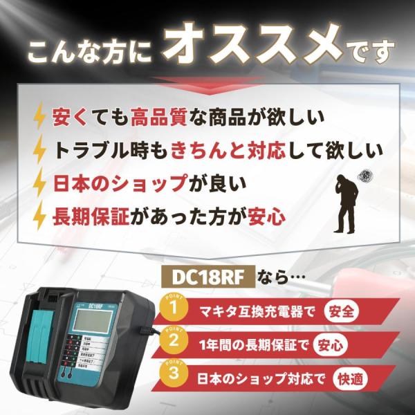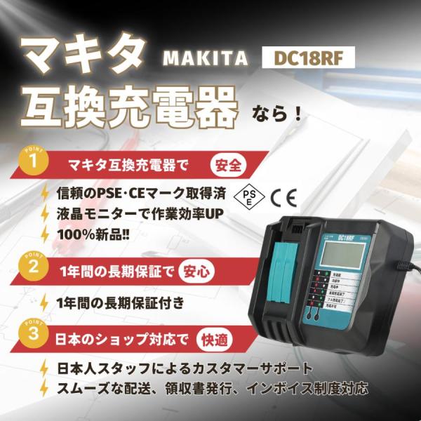 マキタ 互換 18V バッテリー 充電器セット BL1860B DC18RF マキタバッテリー 18V 1年保証 PSE認証 DC18RC DC18RD 対応 日本企業 ( DC18RF×1台+BL1860B×2個 )