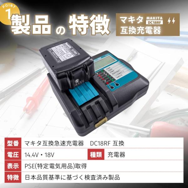 マキタ 互換品 makita DC18RF 充電器 14.4V 18V チャージャー 充電式 BL1430B BL1460B BL1830B BL1850B BL1860B DC18RC DC18RA DC18RD (DC18RF/1個)