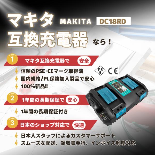 マキタ 互換品 makita DC18RD 2口 充電器 14.4v 18v 充電式 バッテリー 用 DC18RC DC18RF DC18RA DC18SD BL1860B BL1460B 等対応 (DC18RD/1個)