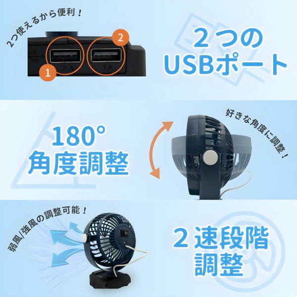 卓上で、アウトドアで、気軽に使える持ち運びに便利な静音タイプのミニ扇風機です。