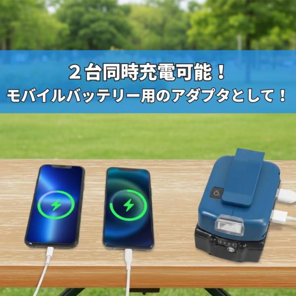 マキタ互換品 ADP05 LEDライト付き USB アダプター 明るさ140ルーメン 18V 14.4V対応 2.1A 防災対策 作業灯 ※バッテリー別売り (ADP05L01-BL)