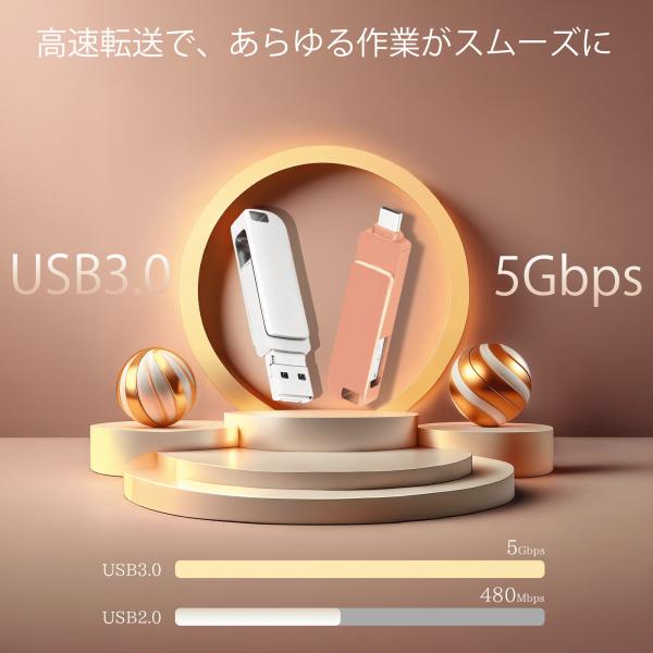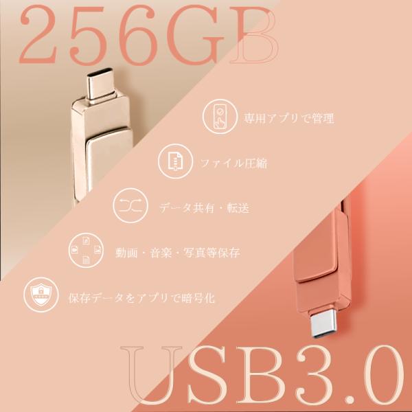 USBメモリ 256GB 4in1 USB3.0対応 iPhone Android タブレット PC 外付け フラッシュメモリ スマホ Type-C Lightning USB micro 小型 ポータブル (USBM256)