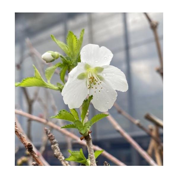 みどり桜(フジザクラ ミドリ 緑桜) :純白の花に緑色の萼と大変美しい気品ある桜です。(リョクガク、緑萼)