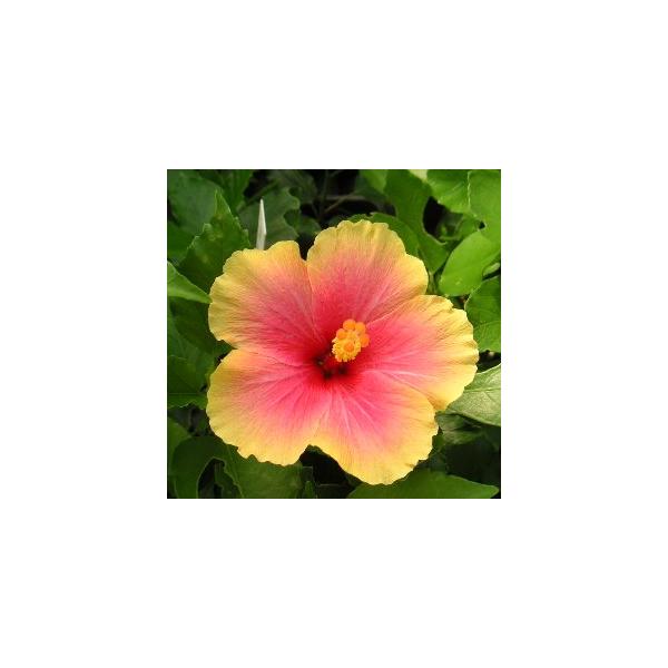 ハイビスカス ミセスユミHibiscus Mrs. Yumi花弁の外側がオレンジ色になる可愛らしいハイビスカスです。アオイ科フヨウ属 非耐寒性常緑低木3寸ポット植え 樹高10〜20センチ程度