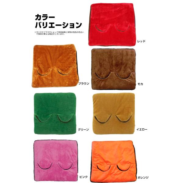 使い方いろいろ、マルチに使える日本製電気座布団&足温器&ひざ掛け カバーは取り外して丸洗いできるから、いつも清潔♪ サイズ(約):ヒーター:38cm x 38cm、カバー:42cm x 42cm 重量:約0.8kg 材質:ポリエステル100% 表面温度(約):強:約45℃ / 中:約35℃ / 弱:約25℃ 消費電力量(約):強:約10Wh / 中:約6Wh / 弱:約2Wh 電気代(1時間あたり):強:約0.3円 / 中:約0.2円 / 弱:約0.1円 保証期間:1年 コード長さ(約):電源側/1.9m、本体側/0.6m 主な機能:ダニ退治 / 室温センサー / 丸洗いOK(カバーのみ) カラー:ブラウン、ピンク、オレンジ、モカ、レッド、グリーン、イエロー ※色によって、足の入れる内側と本体の裏側の面の素材が違います。 (沖縄、離島、中継地域は別途送料かかります。) 【検索キーワード】ホットクッション ホットマット 1台3役 あんか ホット座布団 足温器 使い方 足元暖房機 おすすめ 受験生 暖房 人気 足 冷え 足入れ 暖房 ヒーター マルチヒーター 受験勉強 試験勉強 デスクワーク オフィス 事務所 テレワーク 在宅