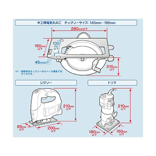 ・取付可能電動工具:丸のこ、ジグソー、トリマ