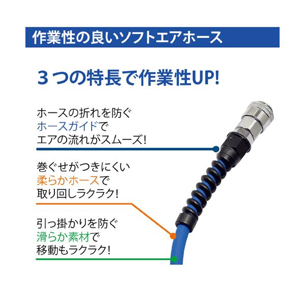 ・作業性の良いソフトホースで、巻ぐせがつきにくく引っ掛かりを防ぐ滑らか素材です