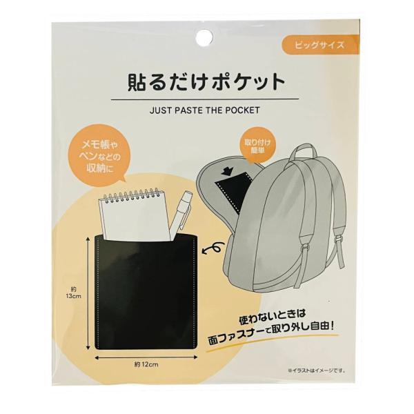 貼るだけポケット 大 ポケット リュック 手提げ トート トートバッグ 鍵入れ 簡単 貼る 縫わない バッグ スマホ スマートフォン
