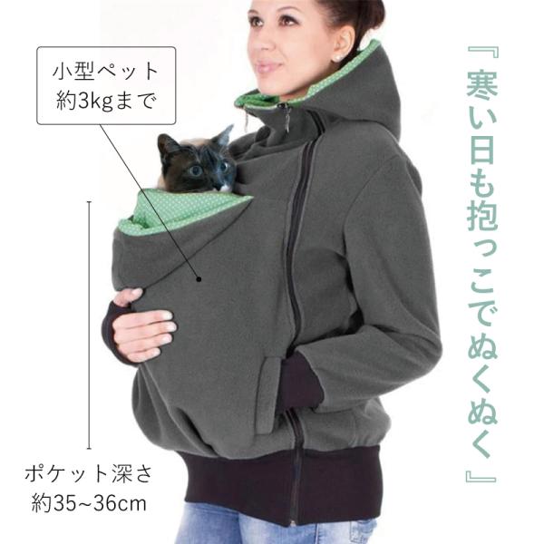 ペットパーカー 猫 パーカー 抱っこ ポケット 小型犬 フリース カンガルー ポケット 犬 小動物 L XL グレー フード付き トレーナー トップス メンズ レディース 誕生日 プレゼント フェレット 防寒 冬 トイプードル チワワ ねこ 抱っこパーカー 取り外し