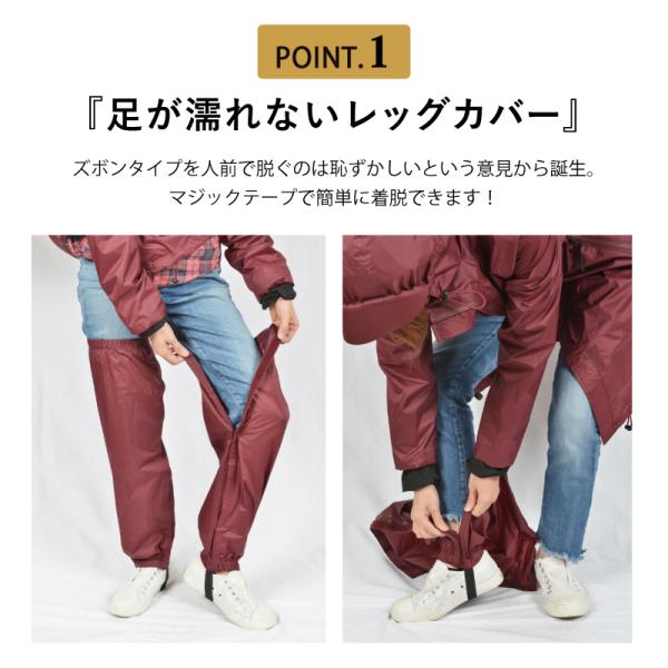 付属のレッグカバーで、足元も雨からガード。