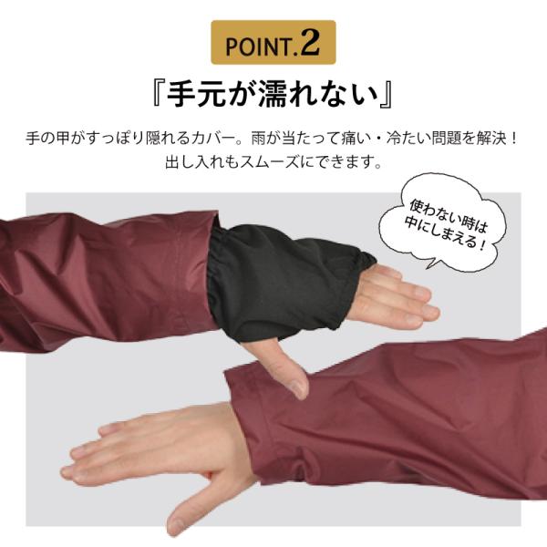 手の甲まですっぽりかぶる袖は、手の濡れる箇所を最小限に。