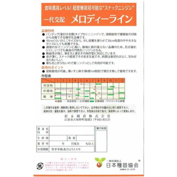 松永種苗 スナックニンジン「人参 メロディーライン」のタネ 約700粒
