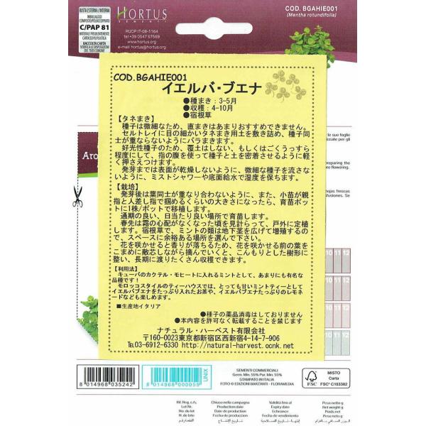 【HORTUS社】ミント イエルバ・ブエナのタネ[内容量:0.05g]