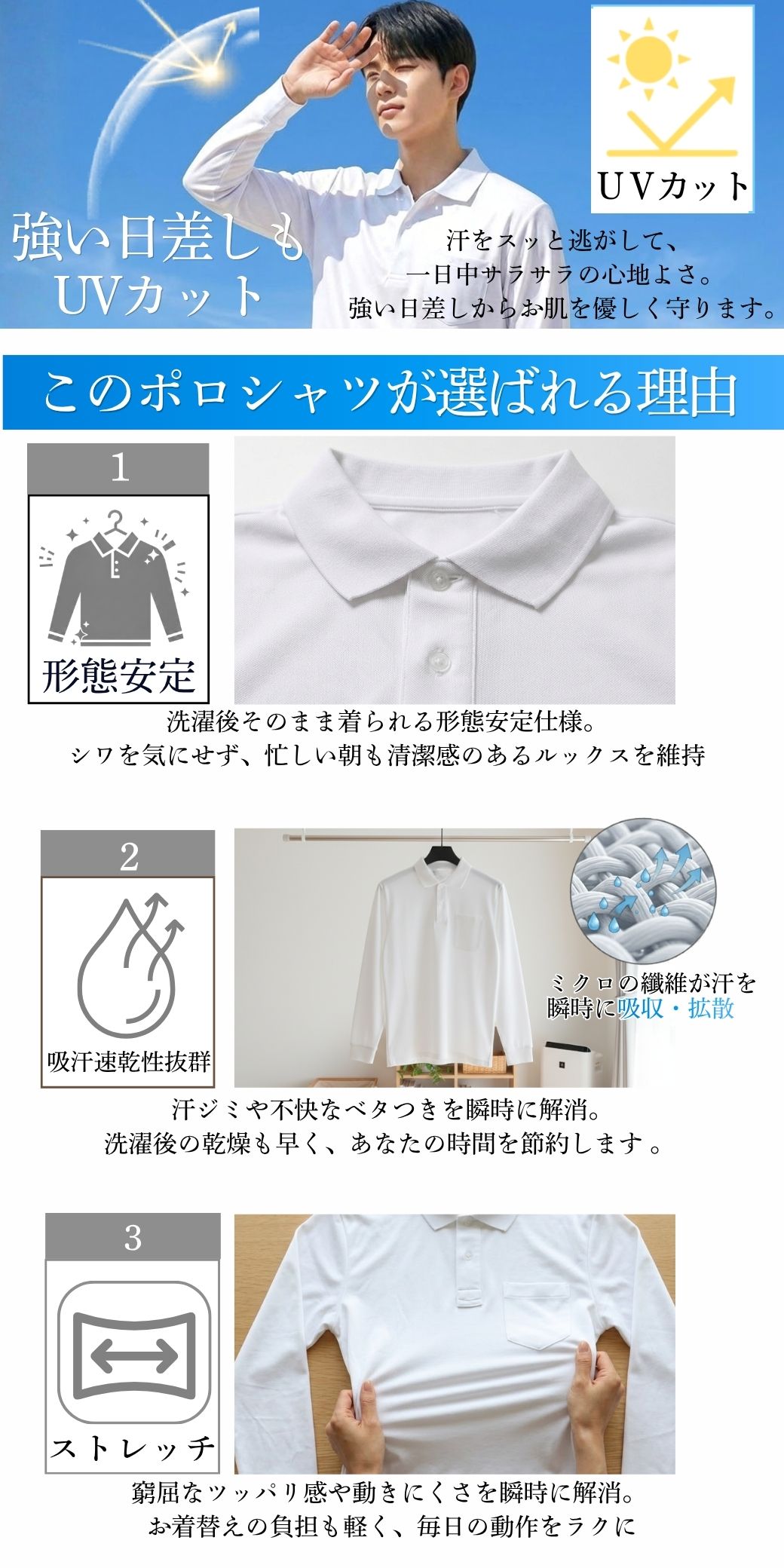 父の日 プレゼント ポロシャツ メンズ 長袖 シニア 50代 60代 70代 80代 高齢者 紳士 形態安定 吸汗速乾 3L 敬老の日