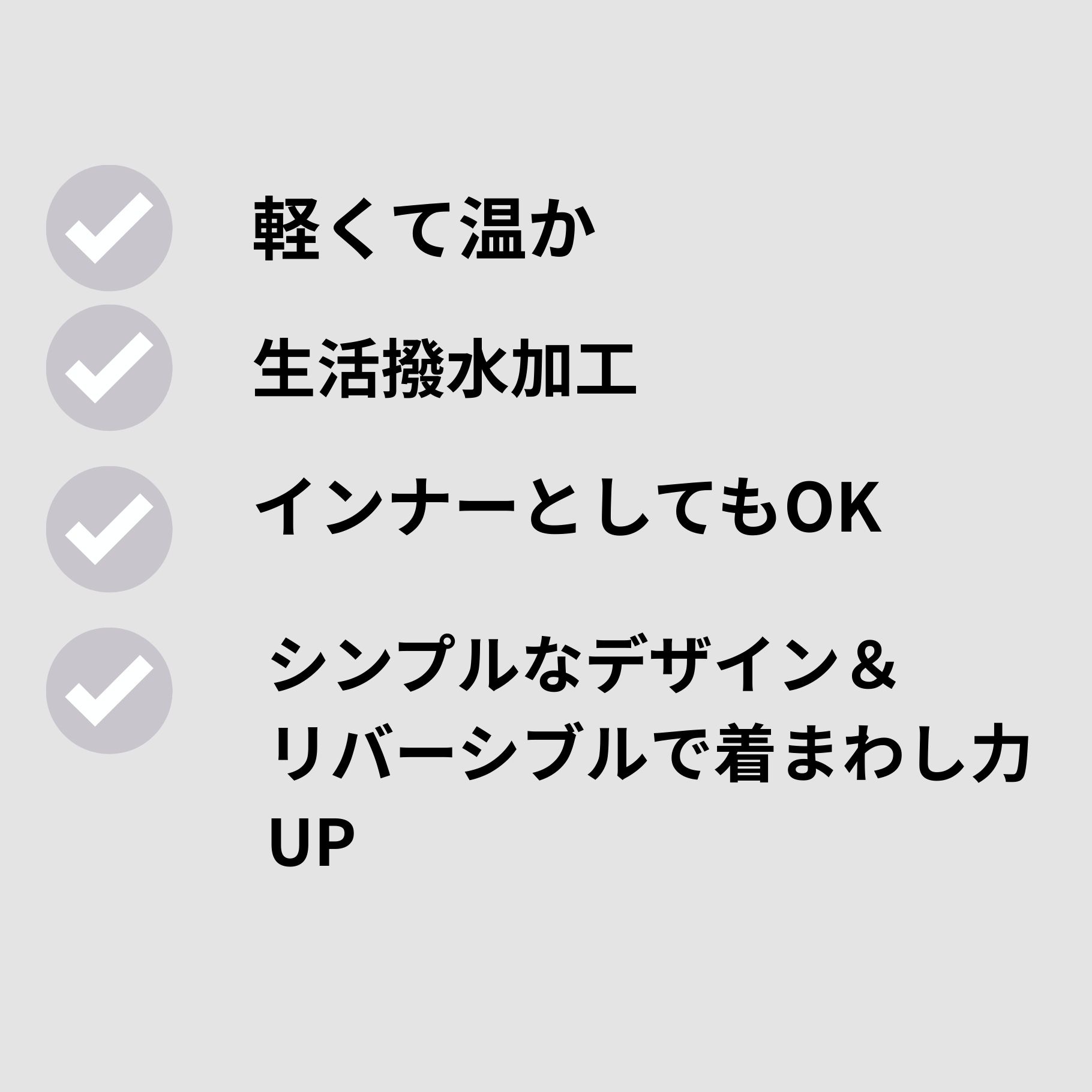 【素材】 表地:100%ナイロン 中わた:80%ダウン、20%フェザー 裏地:100%ナイロン