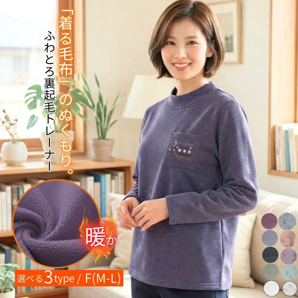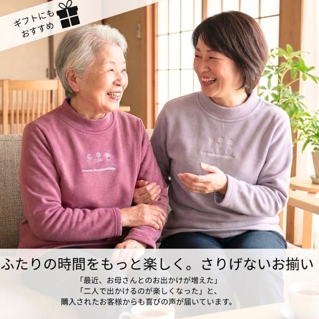 トレーナー レディース 暖かい 裏起毛 シニアファッション 80代 70代 服 トップス ハイネック 長袖 花柄 刺繍 着る毛布 高齢者 婦人服 冬 ギフト ニコニコの森