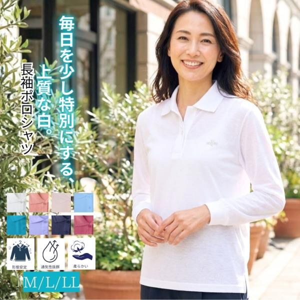ポロシャツ レディース 長袖 吸汗速乾 形状安定 UVカット 介護 作業着 白 黒 母の日 2026 60代 70代 80代 シニア アイロン不要