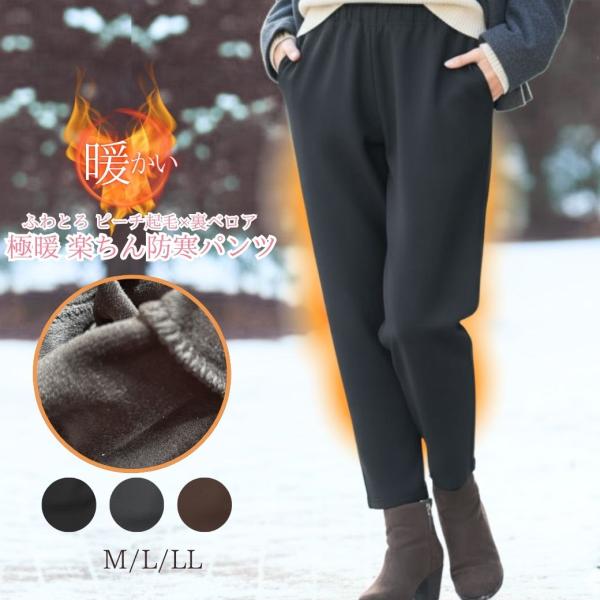 シニアファッション ズボン 80代 高齢者 婦人服 柔らか 極暖裏ベロアパンツ レディース 70代 90代 お年寄り シニア 冬 蓄熱 股下60cm