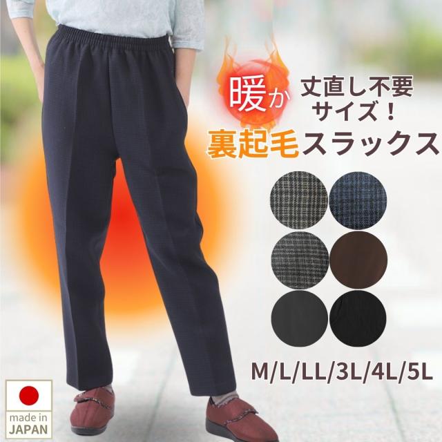 5Lまで対応 日本製 ズボン レディース 冬 裏起毛 暖かい シニア パンツ 股下60cm 丈直し不要 ウエストゴム 介護 丈夫