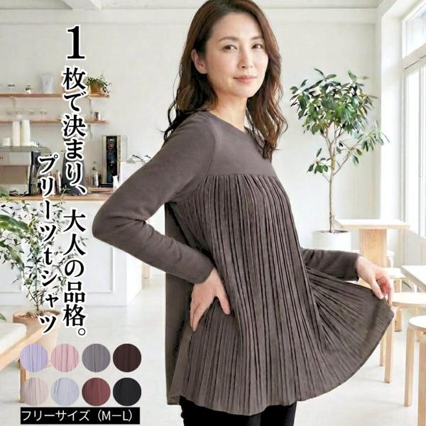 カットソー 長袖 レディース プリーツ シニア 高齢者 トップス ゆったり 体型カバー チュニック 70代 80代