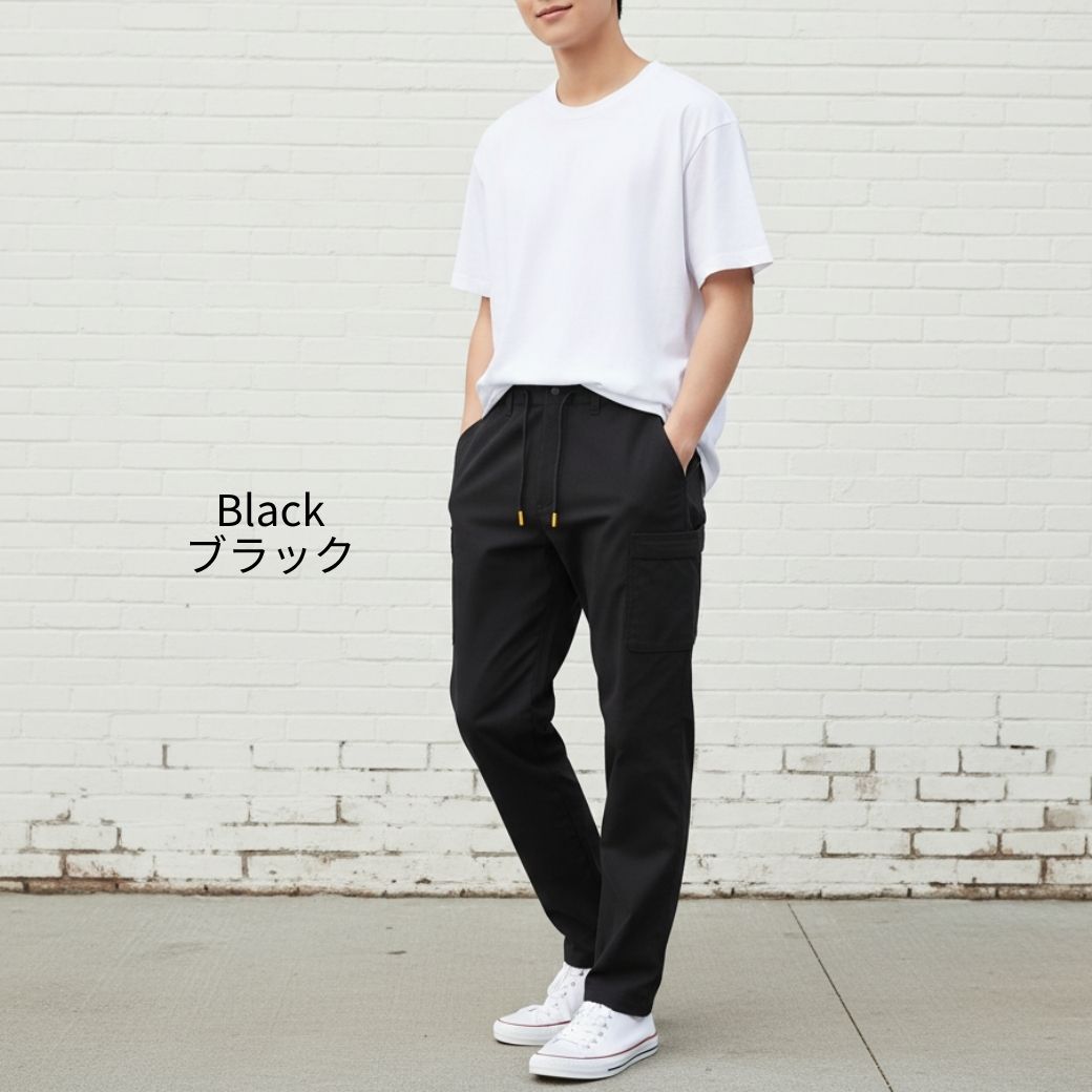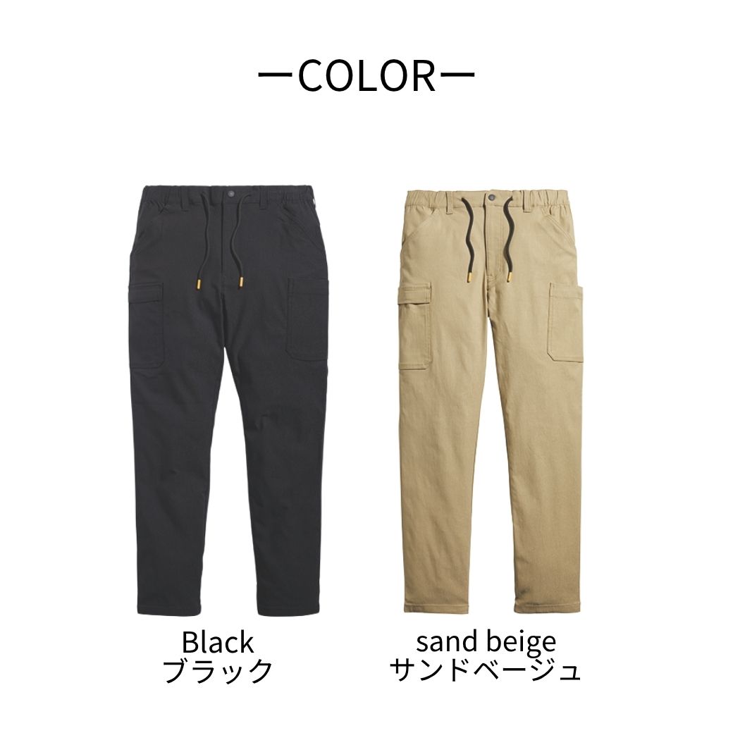 伸縮率50%ストレッチ作業ズボン ウエスト総ゴムカーゴ