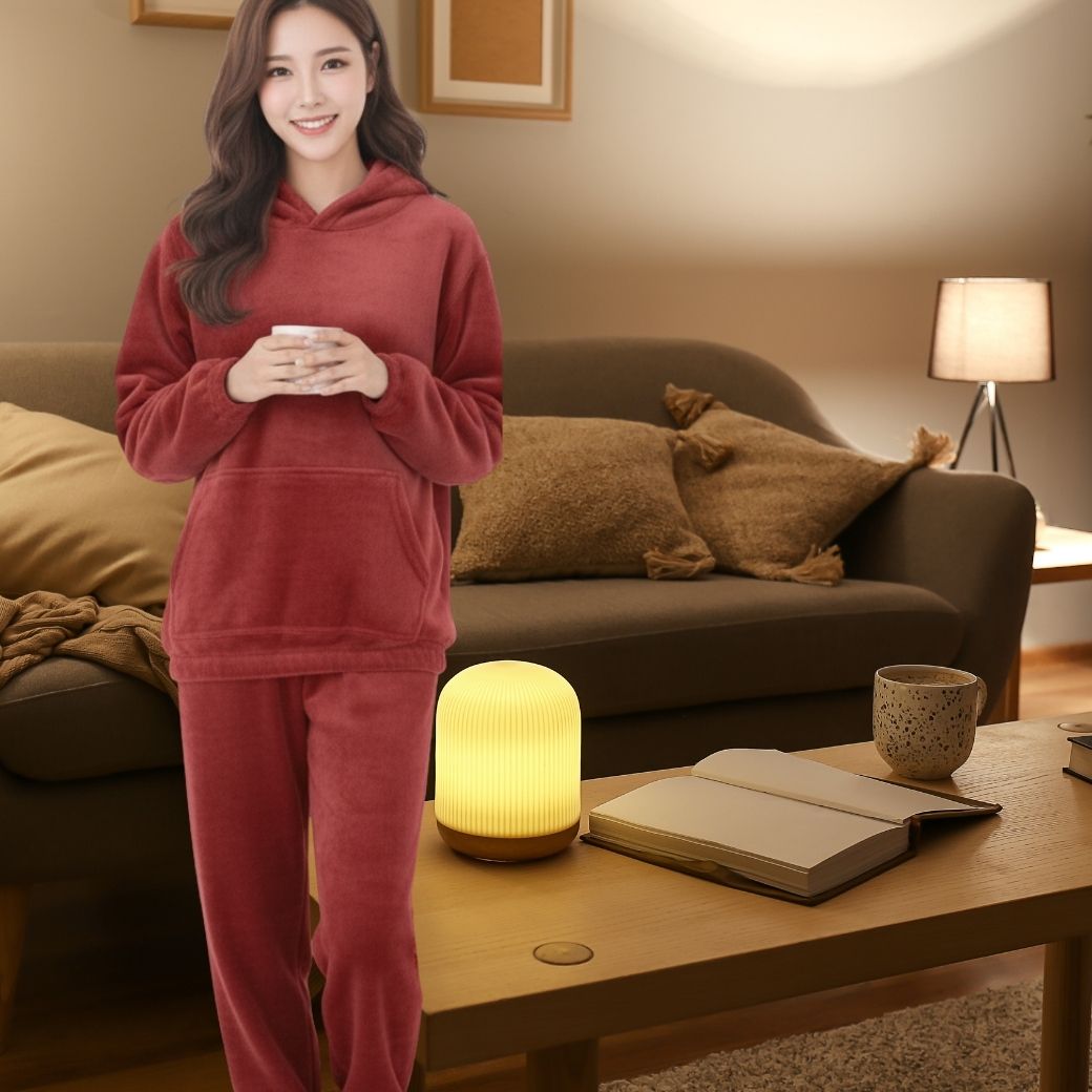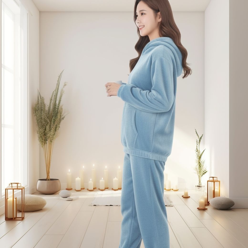 袖も裾もゴム入りで家事がしやすい。モコモコ暖かパジャマ。