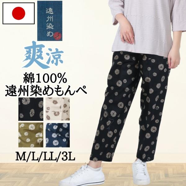 もんぺ 日本製 綿100% 遠州染め パンツ レディース 夏 涼しい ズボン シニア 80代 70代 農作業 部屋着