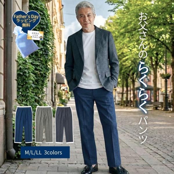 股下66 介護ズボン メンズ シニア パンツ 高齢者 ズボン ウエストゴム スラックス ストレッチ 前ファスナー 紳士服 70代 80代 裾上げ済み 通年 父の日 敬老の日