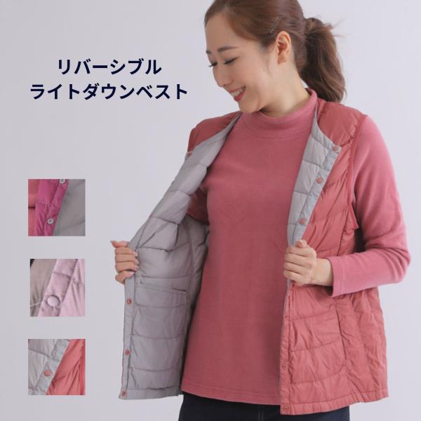 インナーダウン ベスト レディース 秋冬 中綿 アウター 大きいサイズ リーバーシブル ダウンベスト ライトアウター シニアファッション