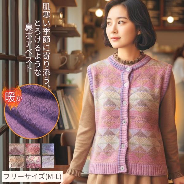 まるで着る毛布 裏ボア ベスト レディース 前開き ニット 暖かい シニア 服 部屋着 洗える おしゃれ 70代 80代 母の日 敬老の日