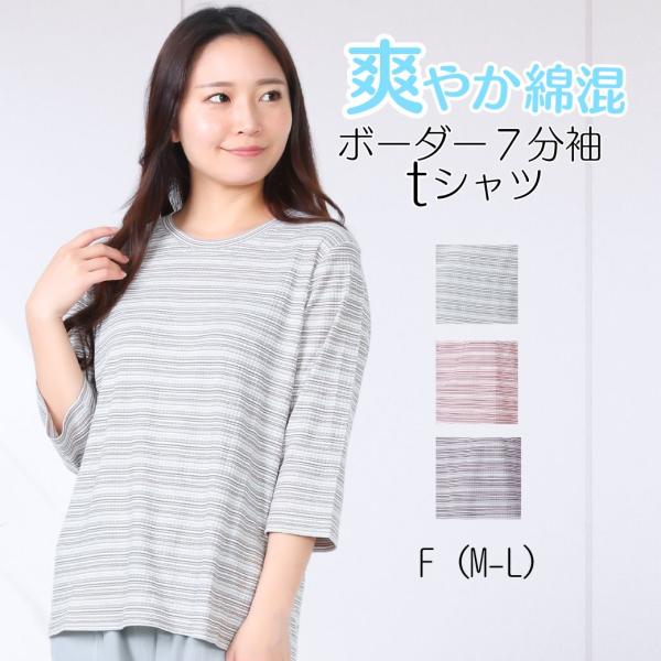 ボーダーTシャツ レディース 7分袖 綿混 シニア 60代 70代 80代 ゆったり 高齢者 婦人服 名前ラベル付き 春夏 冷房対策 デイサービス用
