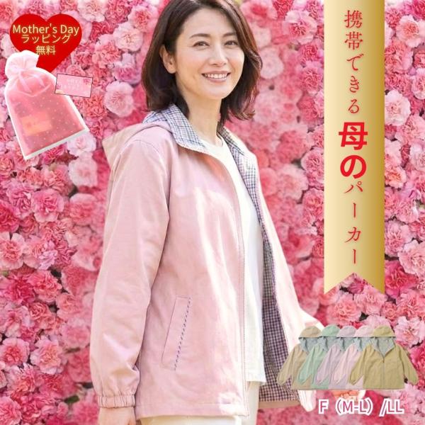 ウィンドブレーカー レディース 撥水 マウンテンパーカー ポケッタブル 裏地チェック フード取り外し 春 秋 アウター シニアファッション 60代 70代 80代