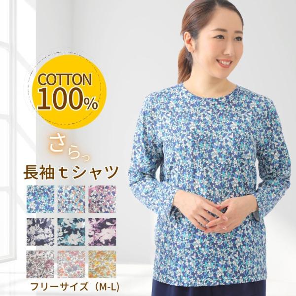 Tシャツ レディース 長袖 綿100% 花柄 シニアファッション 80代 70代 60代 トップス カットソー コットン 敏感肌 介護 おしゃれ 冷房対策 春 夏 秋