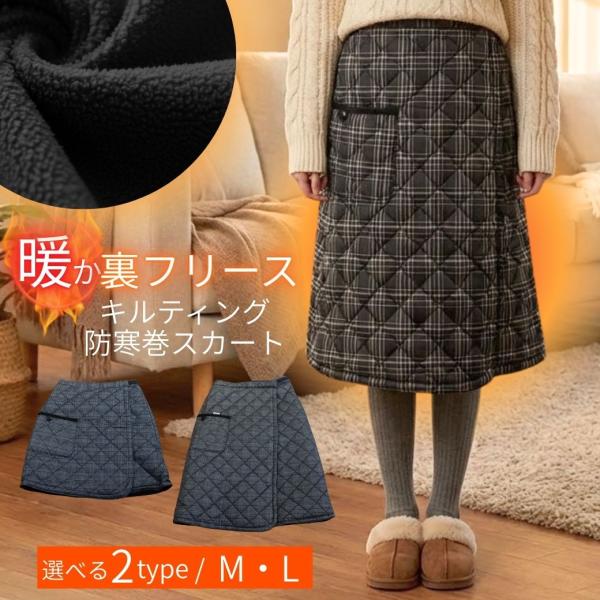 巻きスカート 防寒 裏フリース 暖かい ロング 丈が選べる レディース キルティング ラップスカート ひざ掛け