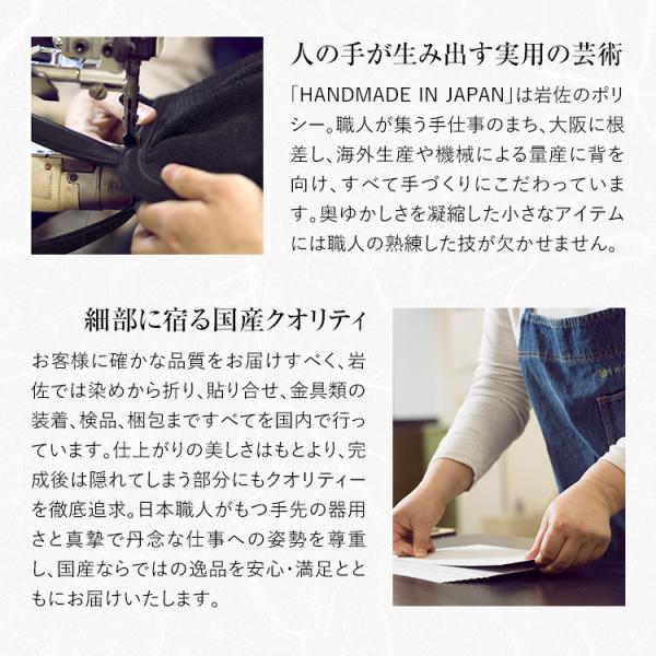 「岩佐」のフォーマルバッグは、日本の熟練の職人が誇りと愛情を持って、すべて手仕事で製造しております。その端正なフォルムと清楚なデザインは、凛とした中にある女性らしいしなやかさを表現します。