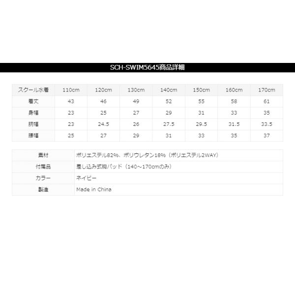 スクール水着 子供 女子 女の子 スイミング 小学生 中学生 キッズ 紫外線対策 ネイビー 紺 110 120 130 140 150 160 170 cm SCH-SWIM5645 ゆうパケット対応