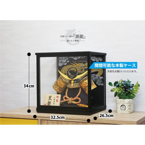 五月人形 コンパクト おしゃれ 黒龍 ケース飾り 上杉謙信 木製 兜飾り