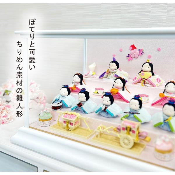 雛人形 ケースケース飾り コンパクト おしゃれ ちりめん アクリルケース ひな人形 かわいい おひなさま お雛様 白 ピンク リュウコドウ