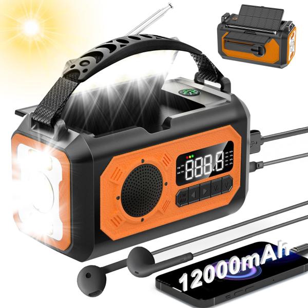 【12000mAh大容量】防災ラジオ ソーラー多機能ラジオ 手回しラジオ 懐中電灯 読書ランプ付 AM/FM携帯ラジオ SOS緊急警報 12000mA