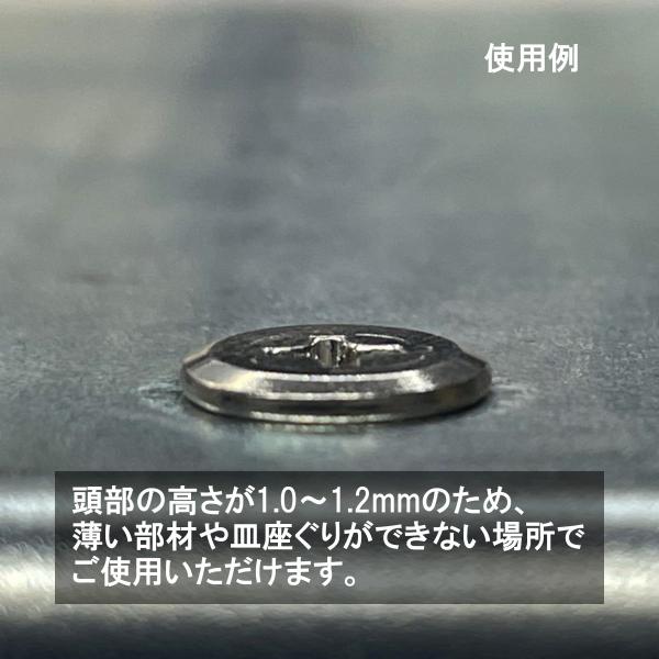 皿もみ(頭が飛び出ないように部材に皿穴を作ること)ができないところや、厚みが邪魔になる箇所に適しています。