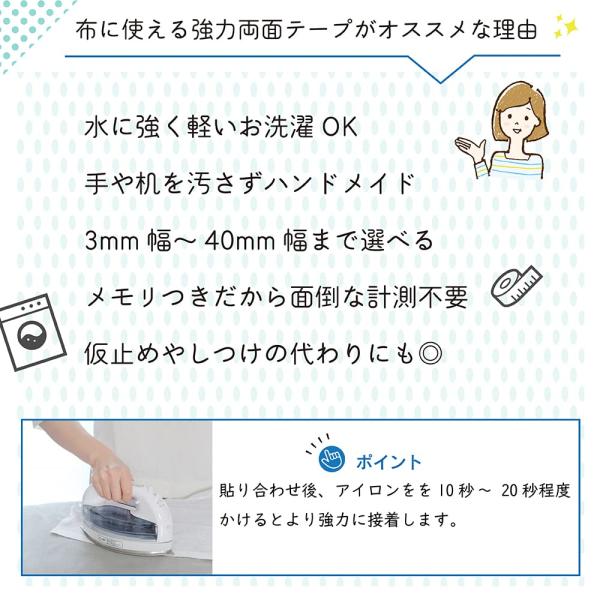 商品名:布につかえる強力両面テープ 幅3mm・5mm×長さ14m 各1巻セット 手芸 カッター付 目盛り付