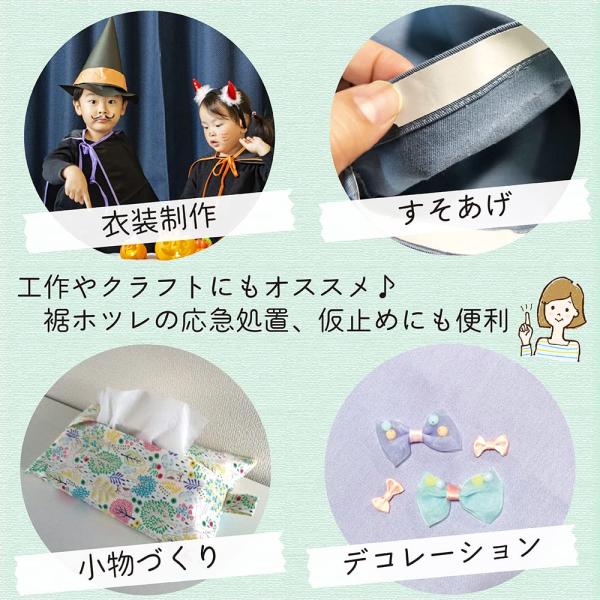 繊維に浸透しやすい特殊粘着剤を使用しているので、布どうしを強力に貼り合わせることができます。