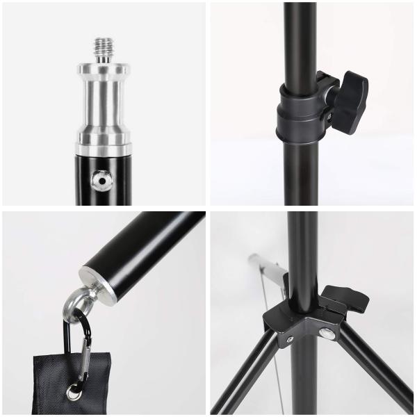 【高さ調整可能のスタンド】70cmから200cmまで調整できるライトスタンドで、アルミ製により軽くて丈夫、積載能力も強い。底部三脚の設計を採用し、安定感抜群が特徴です。