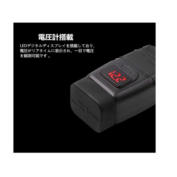 電圧計を搭載しており、電圧がリアルタイムに表示され、一目で観測可能です。電源ON/OFFスイッチ付き!使用しない際はOFFにして無駄な電力消費を防ぐことができます
