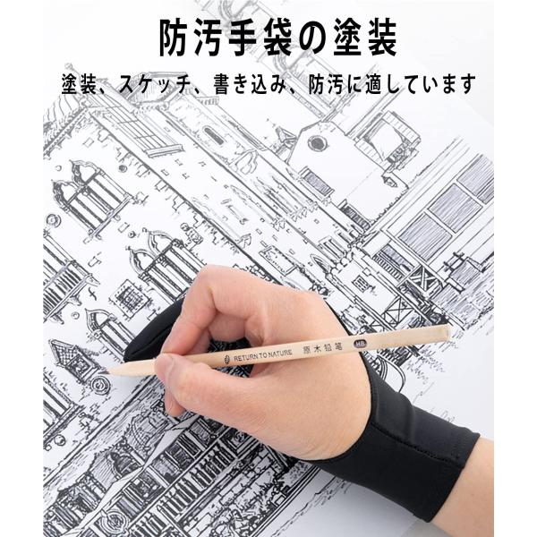 二本指 絵描きグローブ 2枚入り 防汚 通気性 超軽量 快適 誤作動防止 手汗防止 グローブ 液晶ペン タブレット用 対応 左利き 右利き 通用 男女